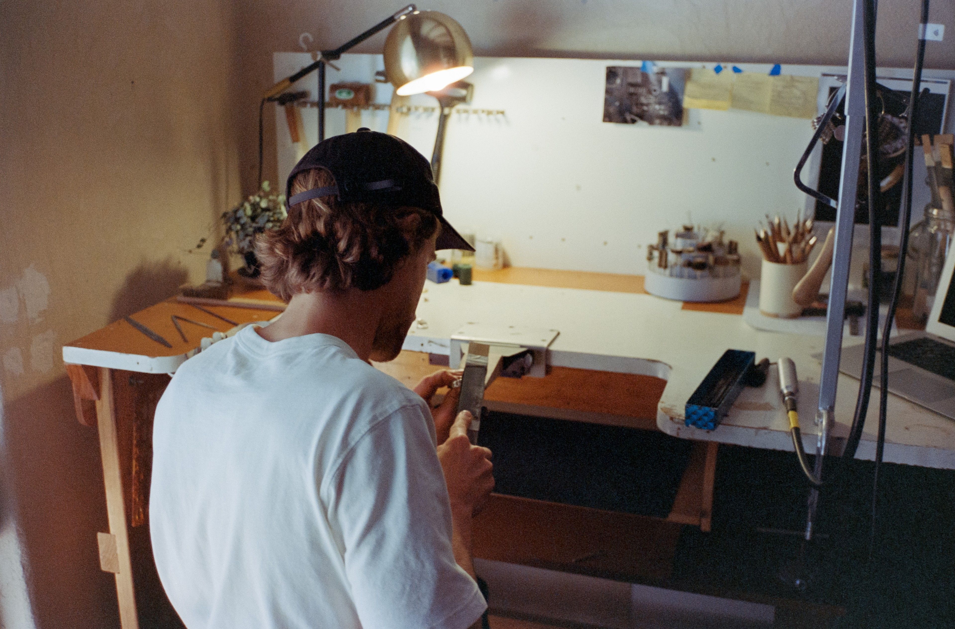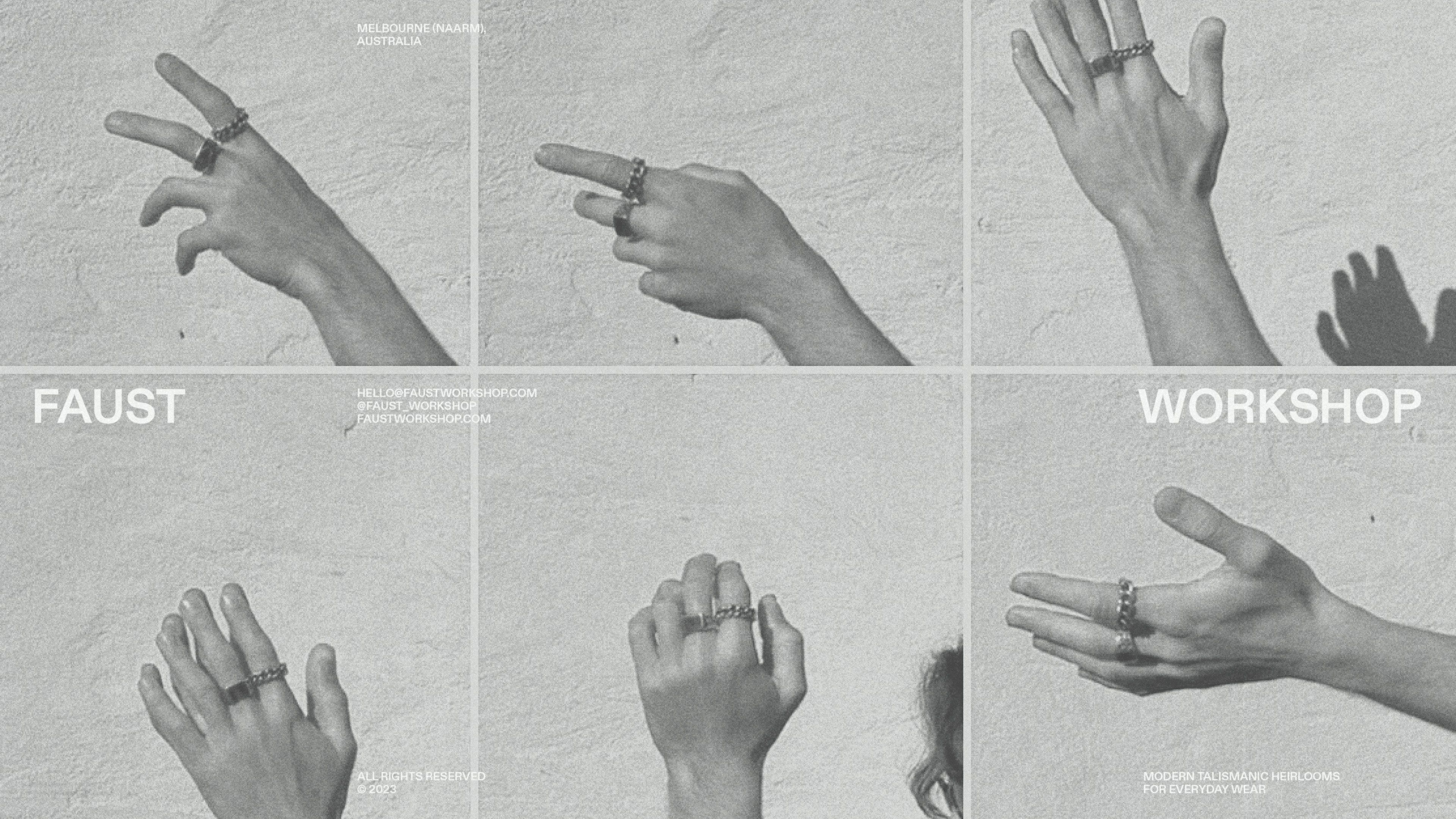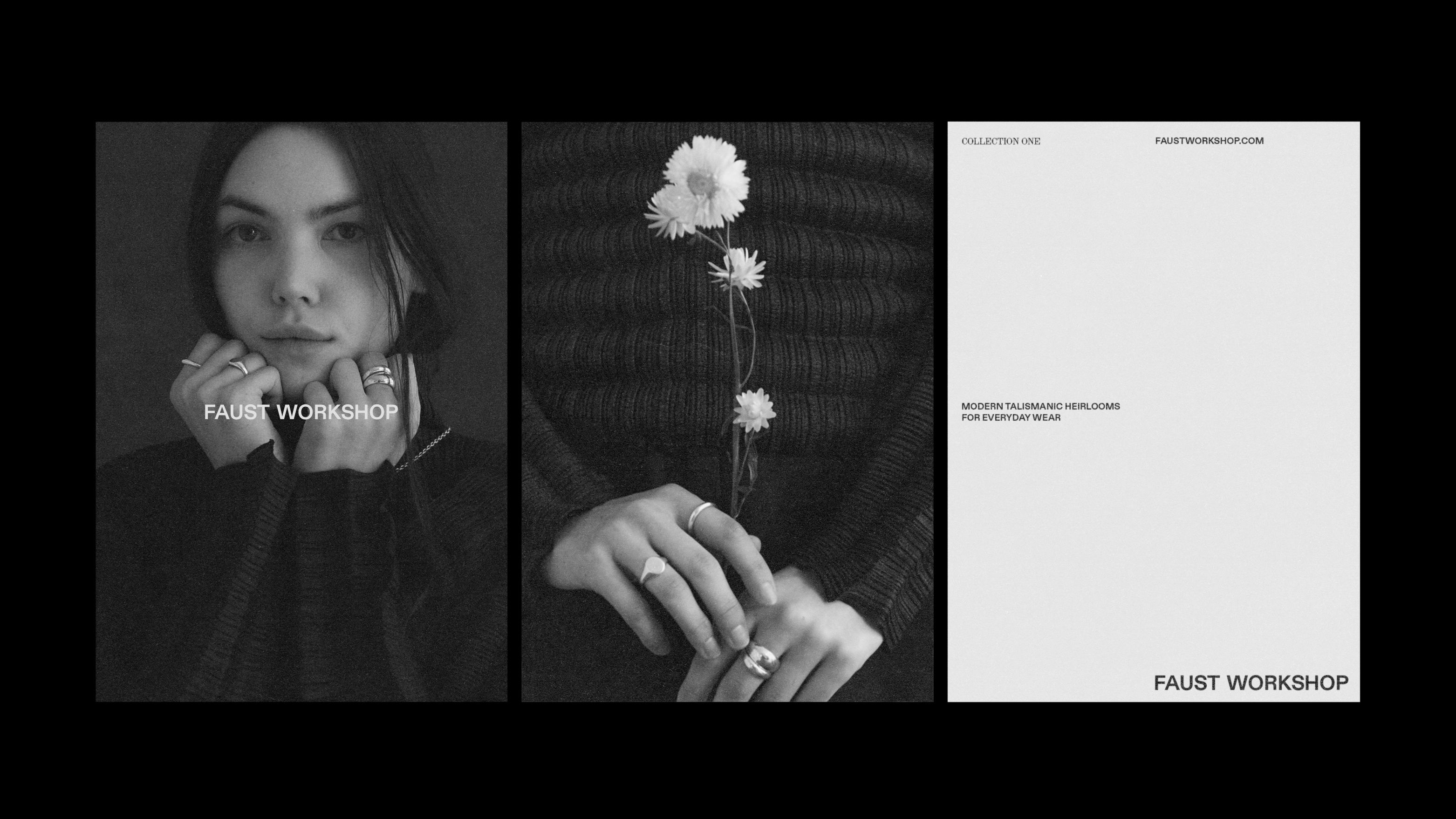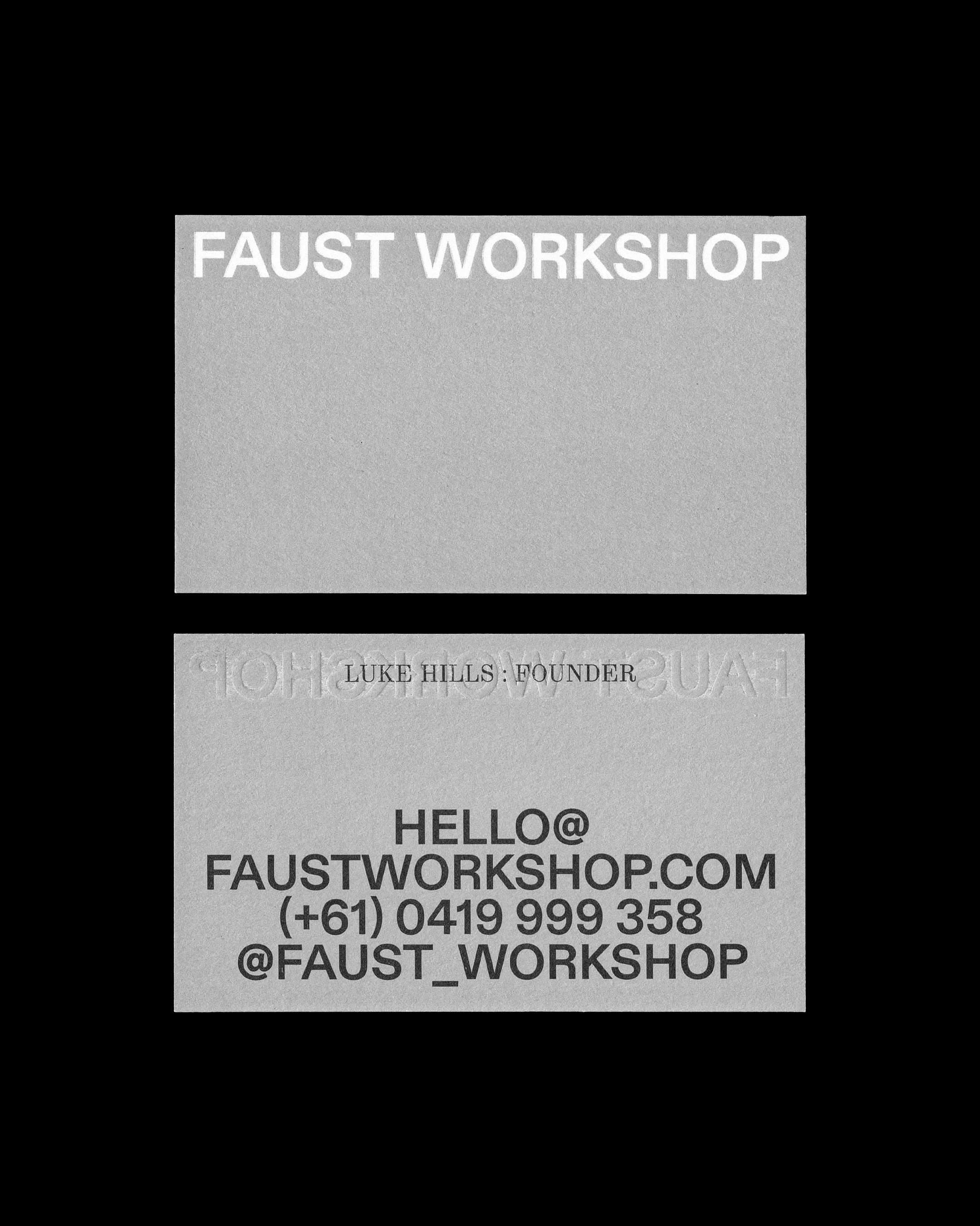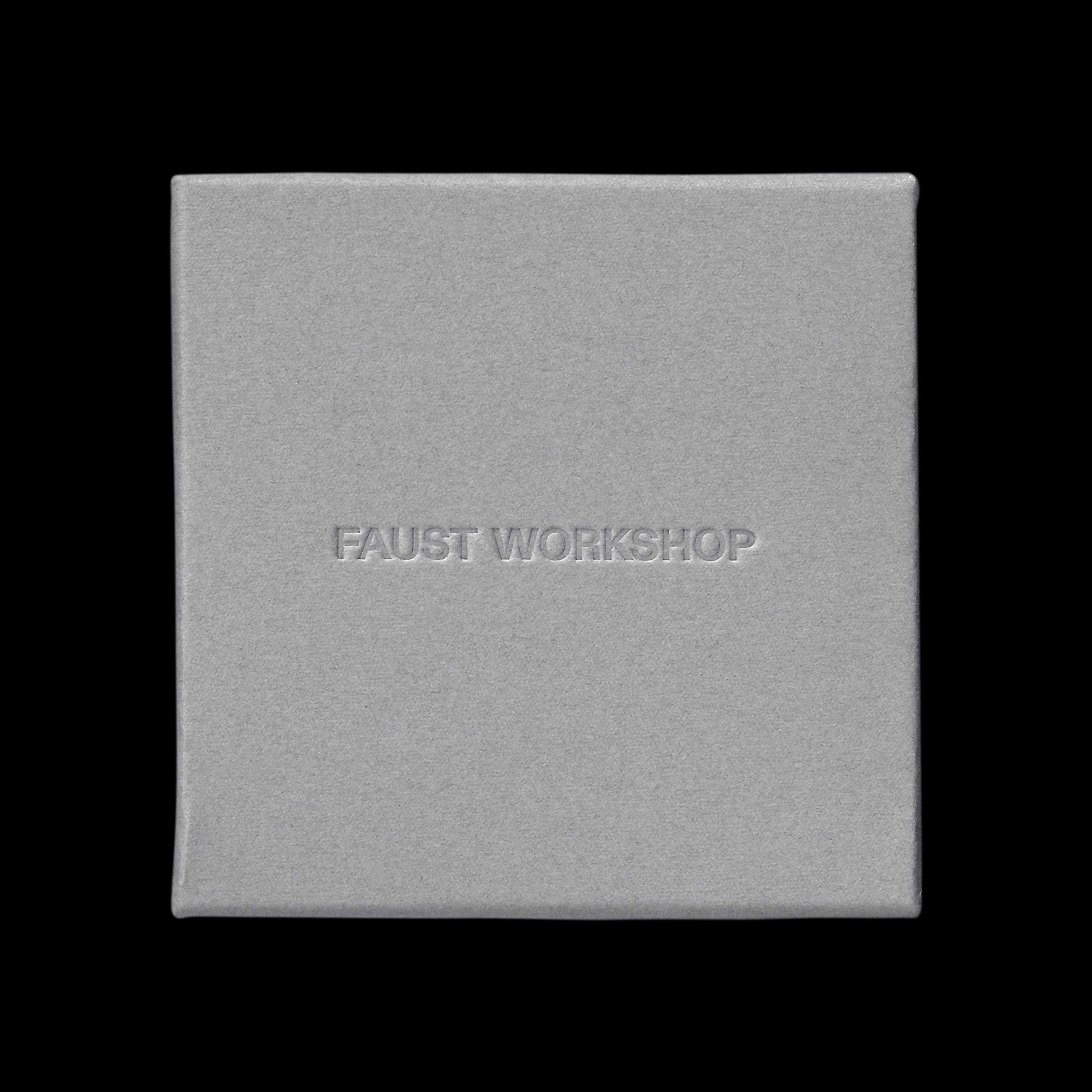 • a clean san serif font that says Faust Workshop on a paper texture